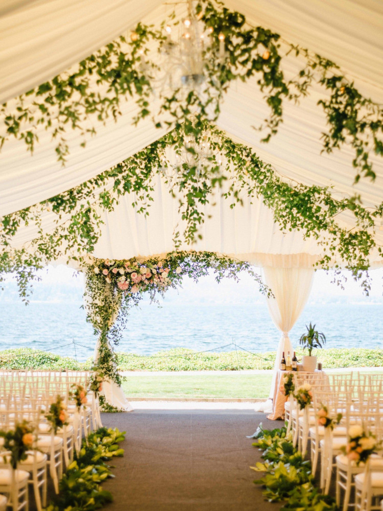 Outdoor weddings are a great idea for you if you don't like cramped spaces or you would love some fresh air. Usually, they are paired with beautifully decorated tents that are simple in their design and they add a lot to the overall aesthetic. Plants are a great way to add some life to the wedding and they go along pretty well with the outdoor arrangement. Unfortunately, if you go for something like this you have to make sure that the weather is nice because rain can be a mood killer and ruin your wedding.