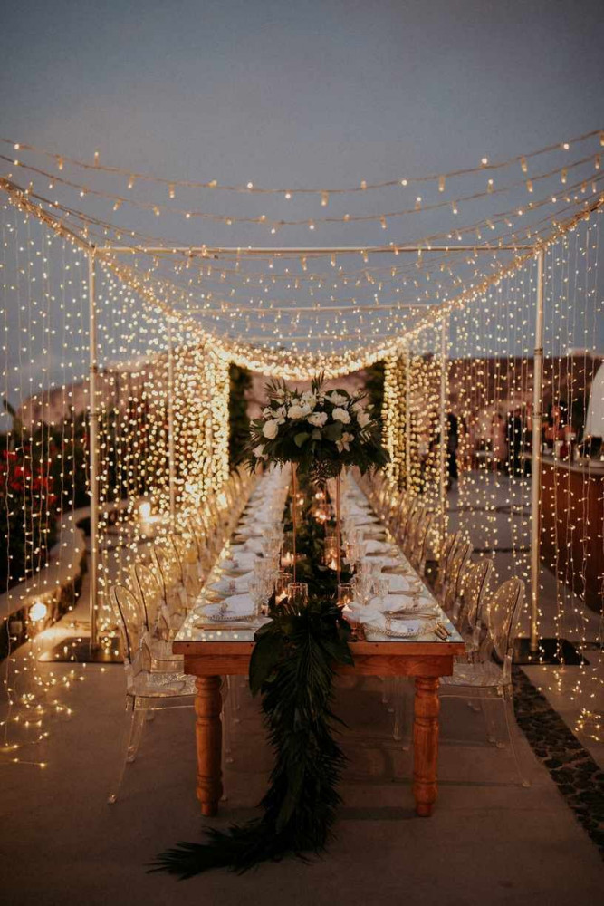 Hanging String Lights have also made a resurgence - such a simple design but a great one. It doesn't take much to do but it makes all guests at your wedding feel like they are in the middle of a warm summer night, where the sky is lit up by a million stars. Working with darker shades of colors can emphasize that feeling to a greater extent.
