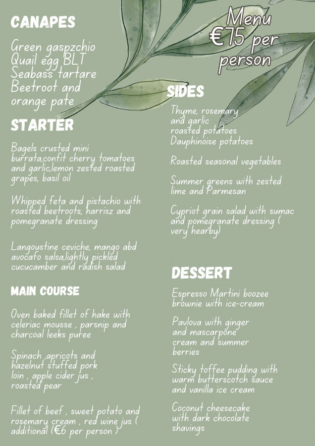 From intimate villa gatherings to grand celebrations under olive trees, each menu is thoughtfully crafted with passion, using fresh local ingredients and a touch of creative magic. We specialise in elegant, sharing-style dining that brings people together - laughter, conversation, and flavours flowing just like love itself.