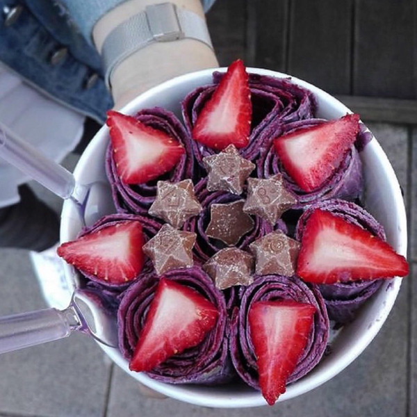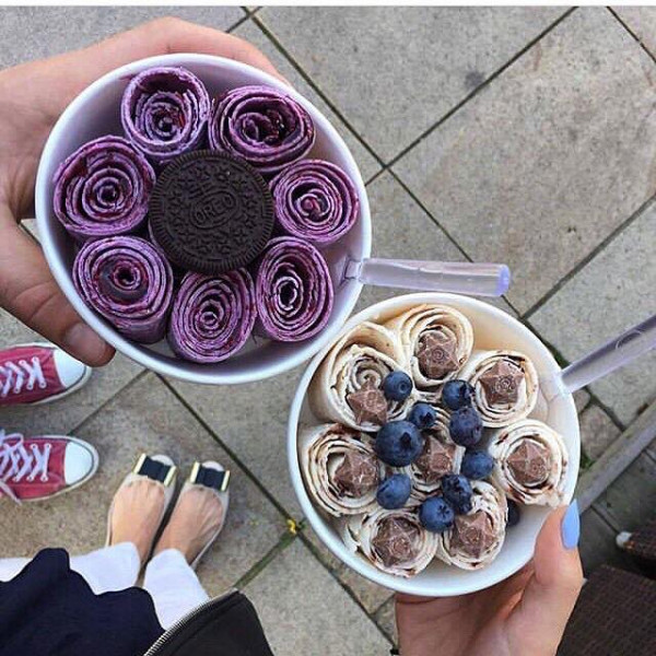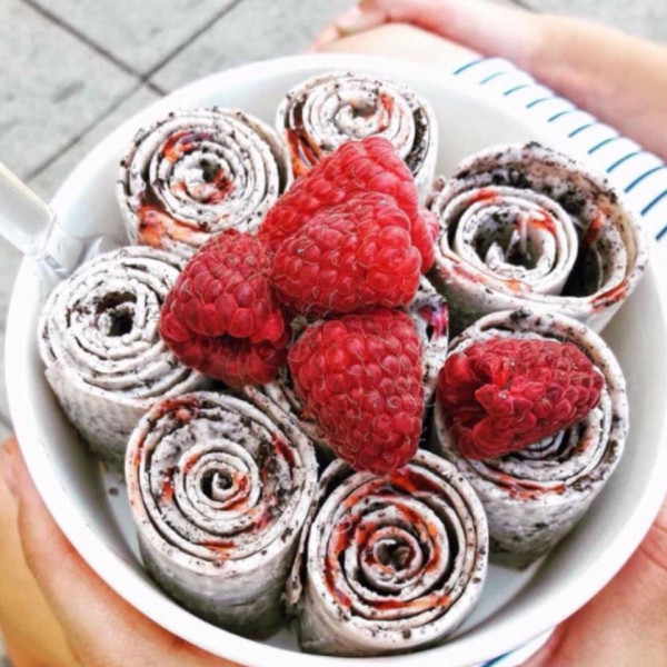 The creation of delicious ice cream is done on a special freezing plate with a combination of cream or chocolate base with any branded additions (e.g. Oreo, Nutella, Kinder Bueno) and fresh fruit. Thai ice cream is natural and healthy, and the customer decides about the taste of ice cream.
