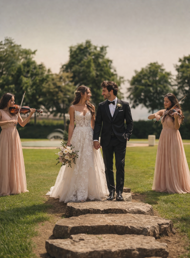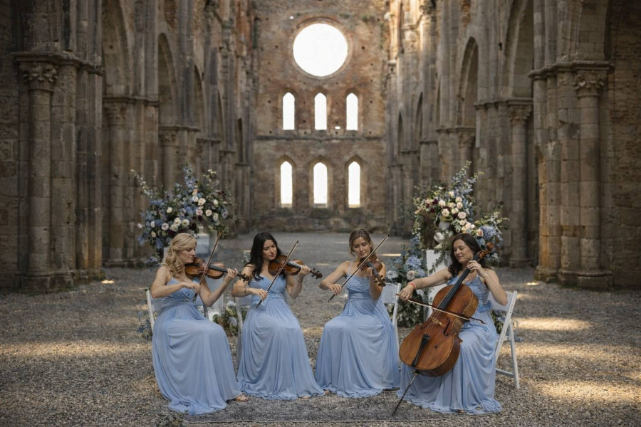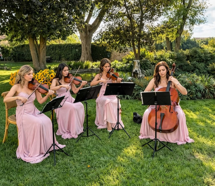 The Bridgerton String Quartet is made up of professional musicians specializing in weddings for Italian, English, American, and European couples. Its members boast a diverse concert career spanning multiple genres, from BRIDGERTON-STYLE MODERN MUSIC to CLASSICAL and INTERNATIONAL MUSIC. - Music for Weddings, Aperitifs, Ceremonies, and Cake Cutting - Active in Venice, Verona, Lake Garda, Udine and Trieste.