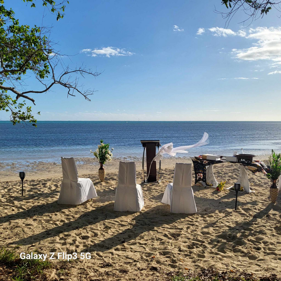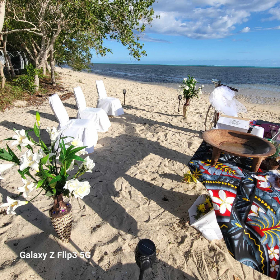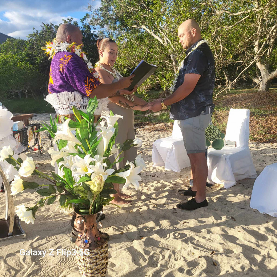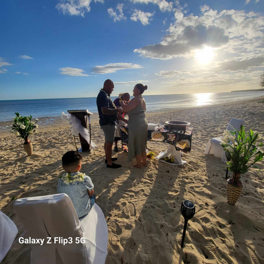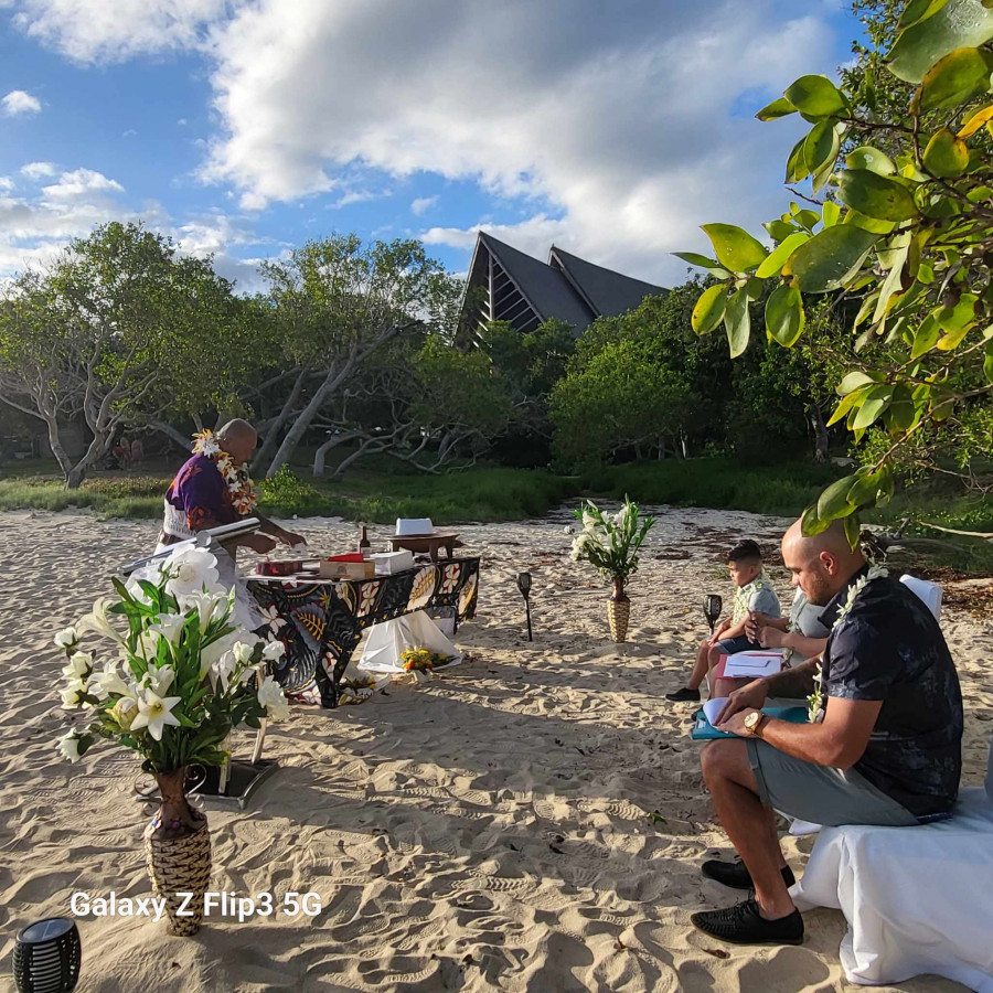 We both can not thank your wife Marilise and you Marco enough for our ceremony.To celebrate our 5th Wedding Anniversary in such an intimate and emotional way. The ceremony definitely exceeded our expectations and you went above and beyond to make us feel special. To incorporate Wallis/ Tongan words and kava ceremony for Polynesian and the French words and writing of vows was such a beautiful touch to experience the French Polynesian here in New Caledonia. Our ancestors would be proud. Also Marco your English was great so we definitely felt comfortable. Having our ceremony on the beach of the Sheraton Hotel in New Caledonia during sunset with a beautiful set up and touch by your wife making us feel overwhelmed with emotions and love. Marco's playing of the ukulele and both your voices made us feel honoured during our renewal of vows. All this making my wife Precious and I feel like royalty and to give gifts to our son Slater Kapelieli and have him participate in our ceremony as Best Man was a great personal touch. We highly recommend Marco and Marilise if anyone is planning a wedding or renewal of vows in New Caledonia. The commitment to our ceremony is second to none as we were treated with love and care for our special day. The couple travelled over 2 hours each way and set up a beautiful scenic beach front ceromoney that we will never forget. Marco made my wife and I feel very blessed and honoured and they also included our son to make our family feel welcomed and special. We felt so overwhelmed with emotion that we gave more money then quoted after seeing the effort and commitment we were shown we couldn't say thankyou enough.