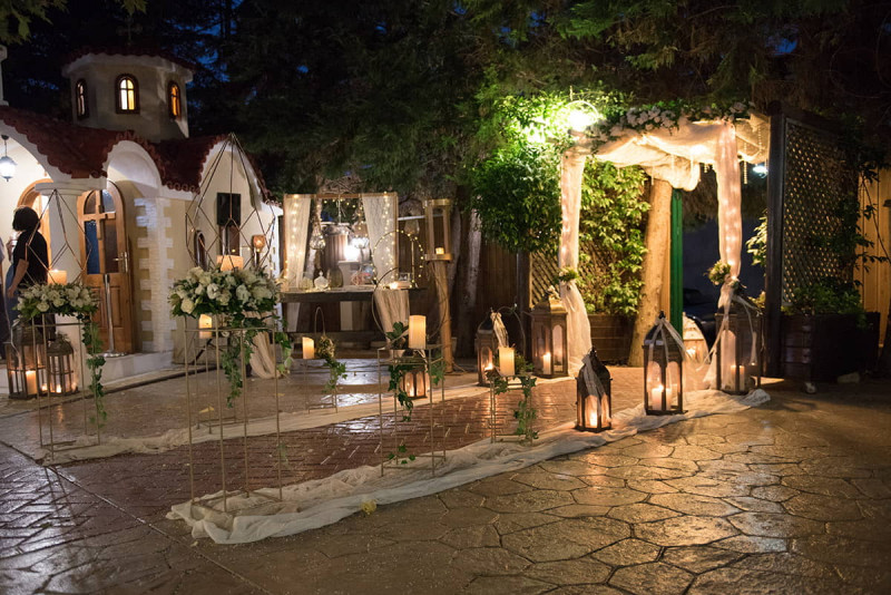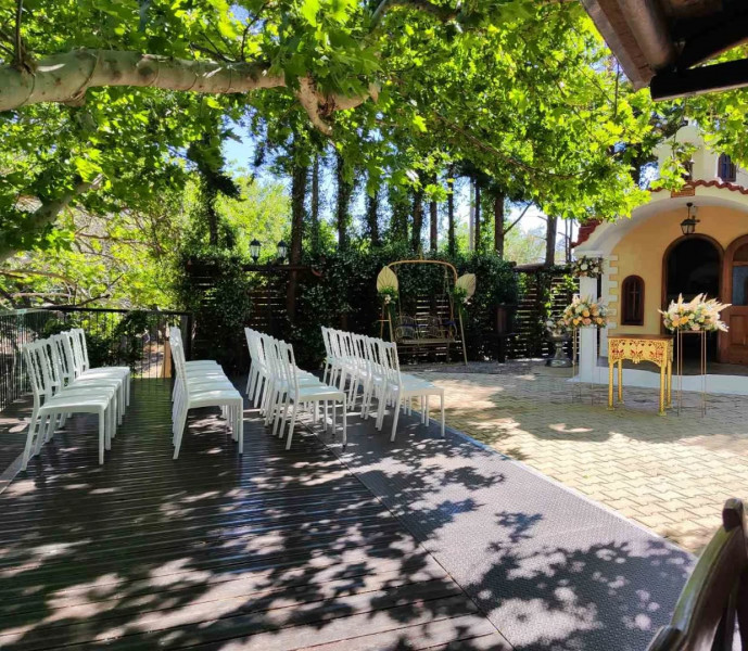 The wedding and reception estate, Venus Epavlis, has been operating for many years in a wooded area featuring buildings of impeccable architecture that enhance the festive atmosphere with brilliance and luxury.