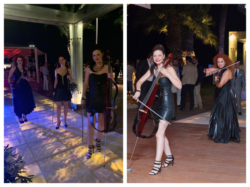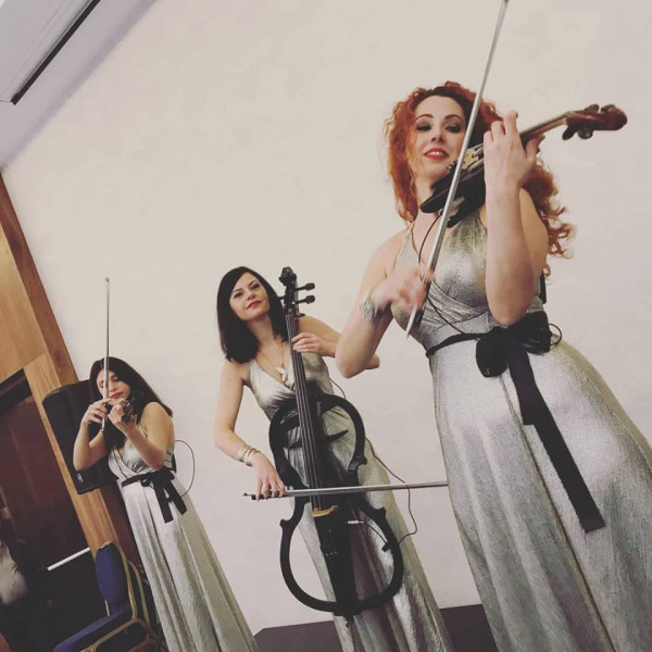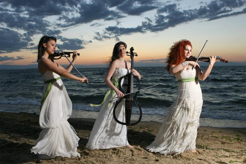 TRINITY, the Electric String Trio that captivates with its unique presence and vibrant rhythms. Two electric violins and an electric cello take you on familiar rock, pop, latin, tango tunes in their most dynamic version.