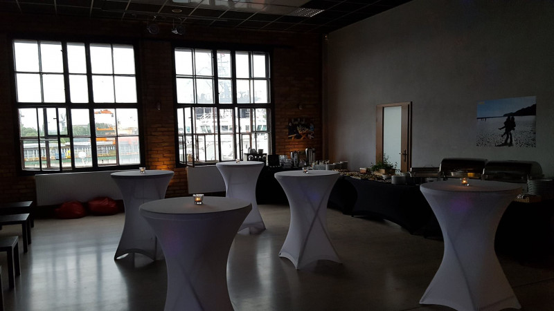 A huge freight elevator will bring you to our space, and on the roof, there are stunning views of the shipyard cranes. We offer a varied modern menu and all types of technical and catering equipment. We provide comprehensive organization, coordination and professional service for even the most demanding parties. We treat each event individually and we can propose original solutions based on the customer's vision or our own innovative ideas. Each of our projects is planned in the smallest detail, coordinated with all subcontractors and implemented according to a previously prepared and agreed scenario. This is the most valuable thing and a guarantee of successful implementation that you get from us at the basic price.