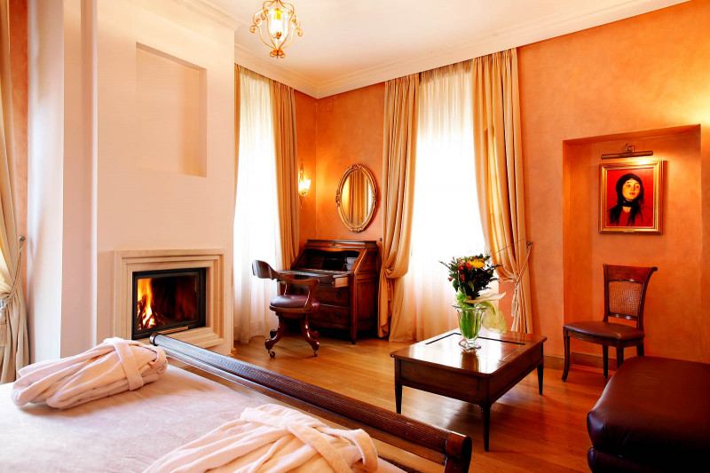 Spacious luxurious rooms and suites αll decorated in a light neoclassical style, with authentic Tuscan furniture, provide all the comforts and small luxuries to the guests. The presence of leather blended with the wood and soft relaxing colours, gives a sense of warmth and cosiness to the rooms.