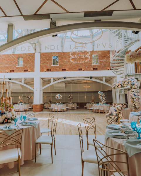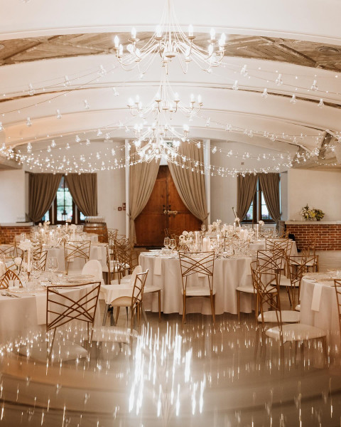 For couples seeking a rustic yet elegant atmosphere, the Porto Hall offers a unique charm reminiscent of a 19th-century winery. With a spacious interior adorned with natural materials like stone and brick, the 450 m² hall features a dance floor at its heart, perfect for creating unforgettable memories. The elegant decor and charming ambiance make Porto an ideal choice for celebrating your big day.
