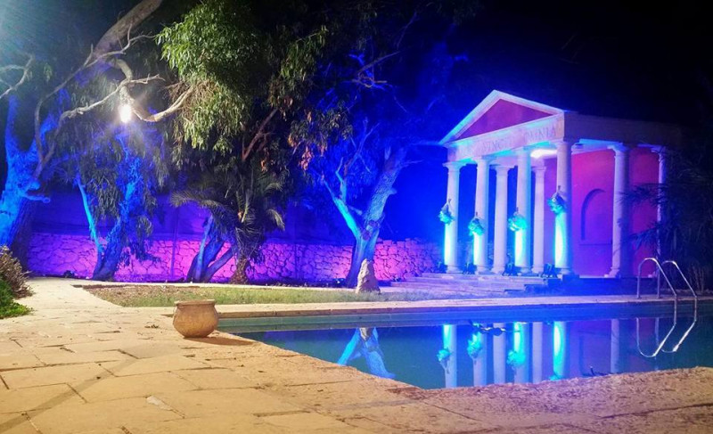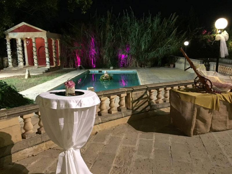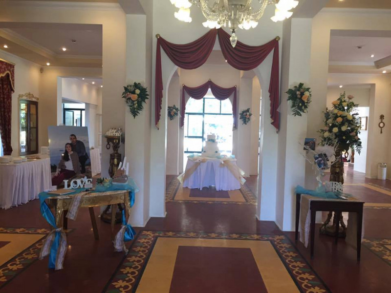 Adjacent the large pool, there is a Greco-Roman style gazebo with columnades and with the inscription on it "Amor Vincit Omnia" or "Love Conquers All", our motto for all the weddings that take place in our venues.
