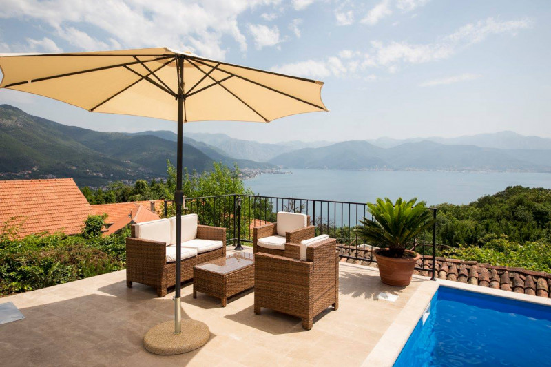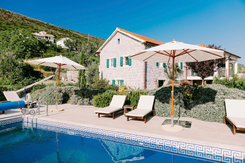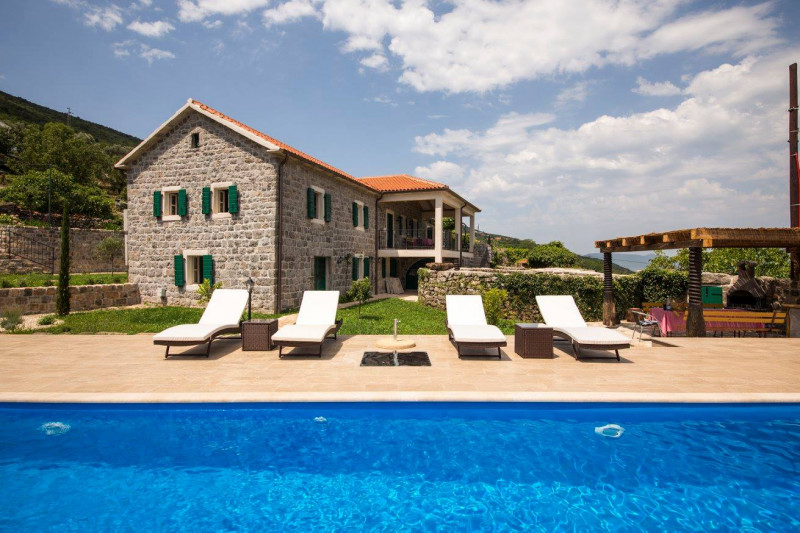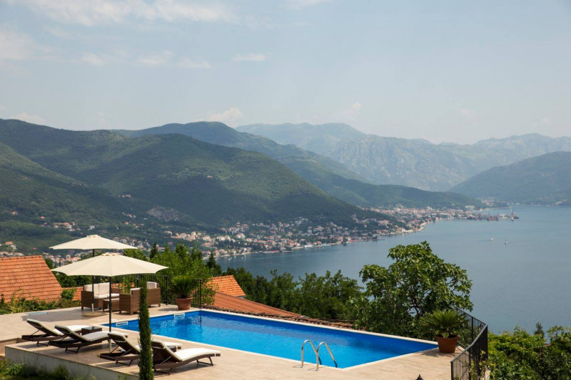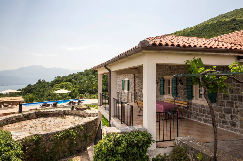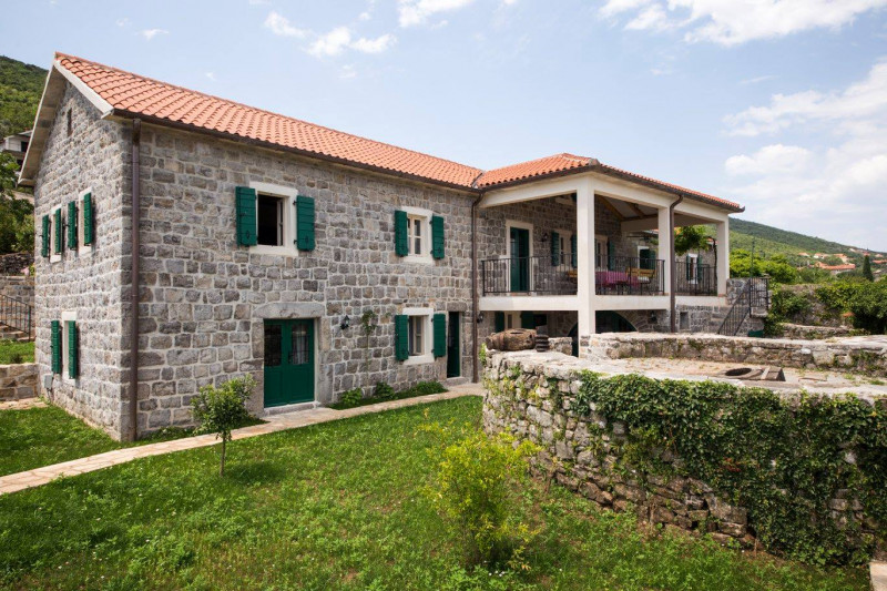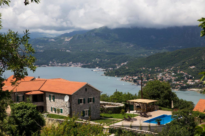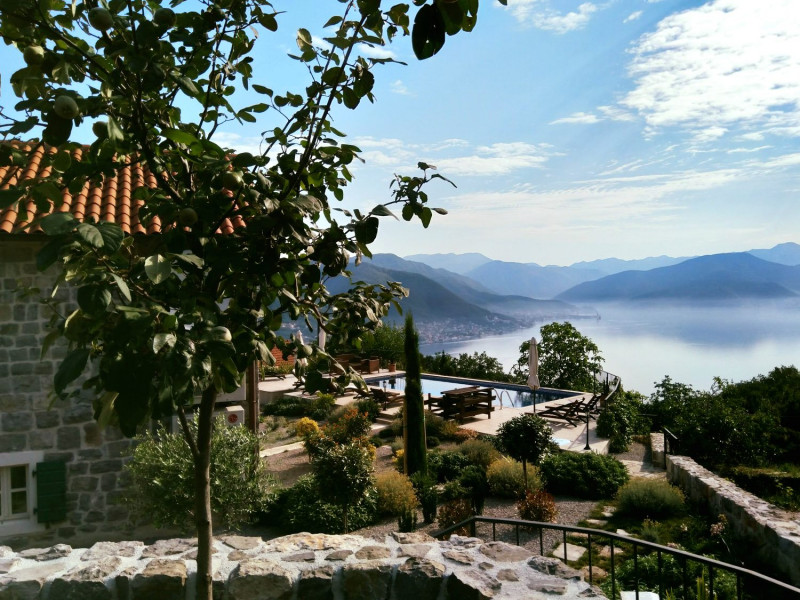 Located high up on the Lustica peninsular, Villa Stari Mlin has dramatic, 180-degree views of the Bay of Kotor and the twin massifs of the Orjen and Lovcen mountains, and is nestled on a peaceful hillside surrounded by olive groves, small stone hamlets and fishing villages. The villa provides stylish and comfortable accommodation for up to 10 guests in 5 bedrooms with an ensuite shower room, each individually decorated with a combination of English and continental antique and contemporary furniture. The villa is also a perfect getaway location in the autumn-winter "off-season", with a wood-burning stove, a well-stocked wood-shed, first-class bedding/soft furnishings shipped from London, and a variety of mountain walks/hiking nearby (as well as skiing in the mountains to the north).