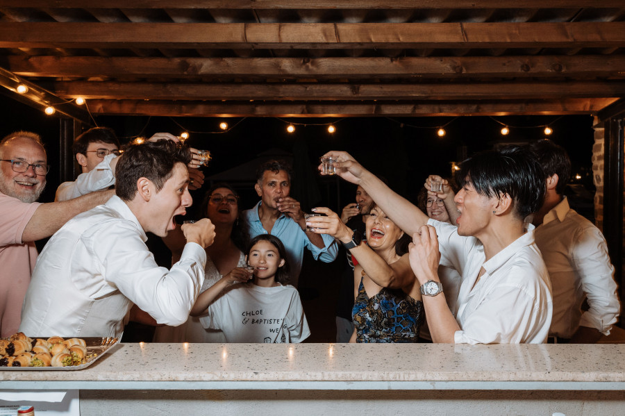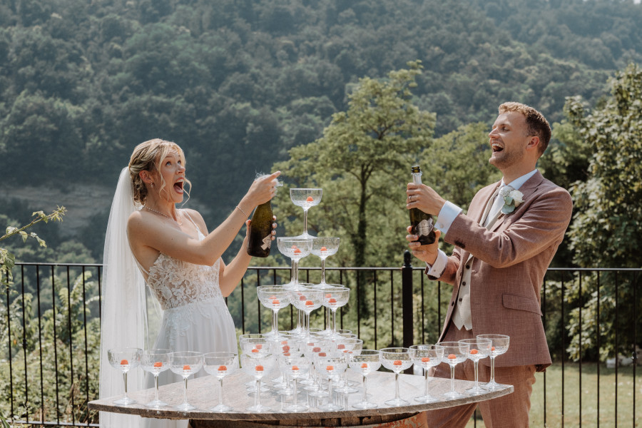 Catering: welcome drink with finger food, pizza party, 2x breakfast, 1x luxury sandwich lunch, reception, wedding cake, prosecco tower, wedding diner, party with open bar