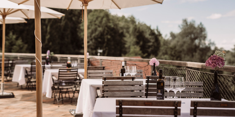 Celebrate your dream wedding in an exclusive, absolutely intimate setting. With the restaurant, various terraces and a romantic jetty at the hotel's own ponds, the large property offers a variety of individual options to tailor your wedding according to your personal ideas - all with a view of the vineyards.