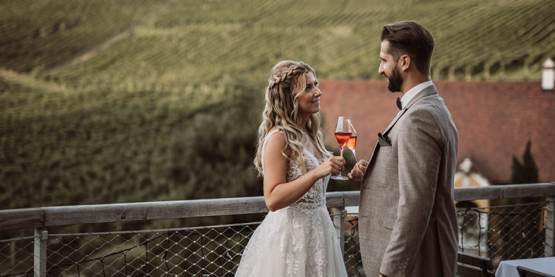 Uniqueness, charm, elegance, romance, flair - nature offers all of this, because there is nothing to add in terms of beauty. The impressive winery, surrounded by vines on rolling hills, provides the perfect backdrop for an unforgettable day.